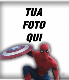 Spider Man con lo scudo di Capitan America per mettere la tua foto effetto