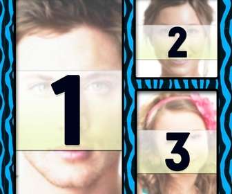 X Place 3 delle tue immagini in tre diverse aree creerà una stampa collage bello stile animale con sfondo blu. Una delle immagini riempirà la metà sinistra seguita dagli altri due in diverse dimensioni sul lato destro, il tutto con lo stile zebra bordo.