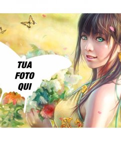 Se si carica una foto al gruppo, prendere farfalla sul disegno della ragazza di fiore del campo.