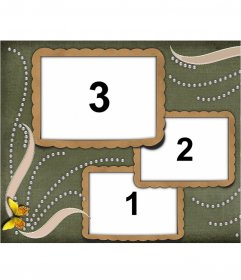 In questo stile collage vintage si può mettere 3 foto insieme con una farfalla e uno sfondo verde.