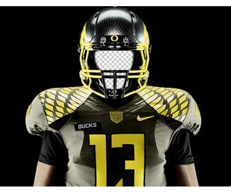 Carica la tua foto e vedrete voi stessi come un giocatore di rugby delle Anatre team Oregon con la loro divisa ufficiale e condividere con i tuoi amici questo fotomontaggio online, se ti piace il calcio e la sua libera .