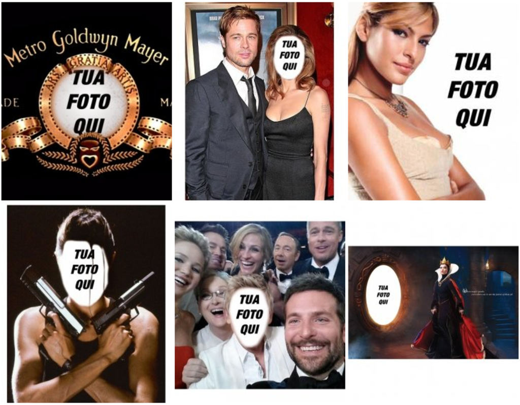 Collage di foto di attrici del cinema, in posa o caratterizzazione dei personaggi che hanno dato loro la fama. basta solo metterle una faccia.